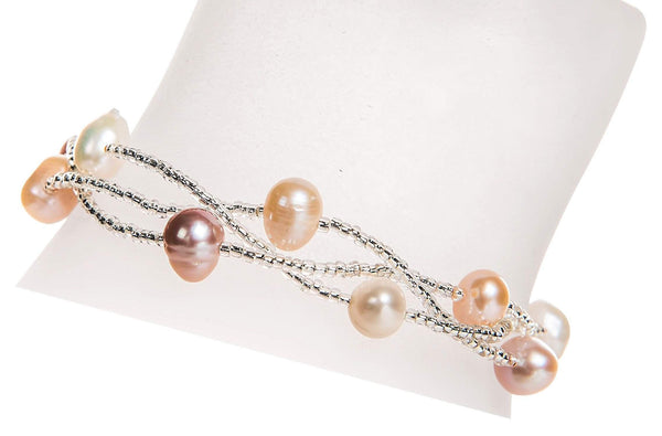 This classic beautiful 7mm multi-color cultured freshwater pearl bracelet is all natural and handmade with clear beads, 3 strands of pearls braided together and finished with 12mm 18k white gold plated crystal magnetic clasp totaling to a length of 8".