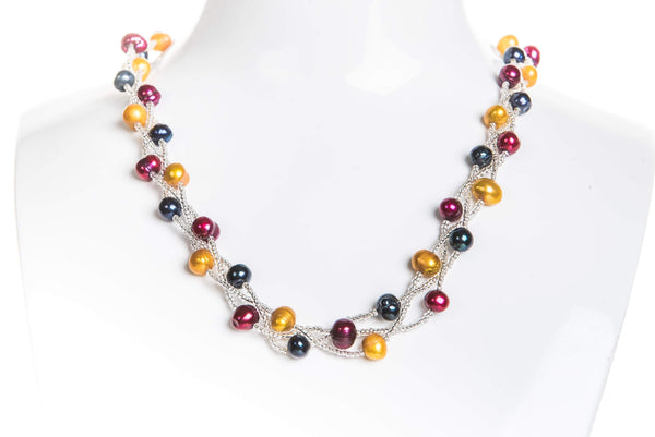 Braided Multi-Color Freshwater Pearl Necklace 7mm