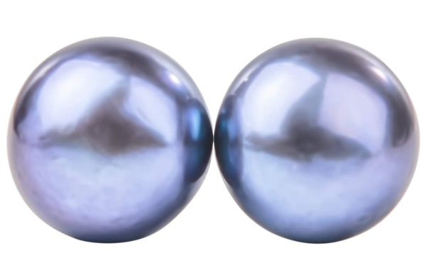 This pair of peacock blue cultured freshwater pearl earring studs are made with sterling silver (925) posts. These pearls are 12mm in size and have a white brilliant rich overtone with a smooth luster surface.