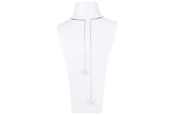 This unique sterling silver (925) cultured freshwater pearl chain necklace, made with all 925 sterling silver and all natural white cultured freshwater pearls. The entire necklace is coated with 18K white gold over the sterling silver, so it will not tarnish.