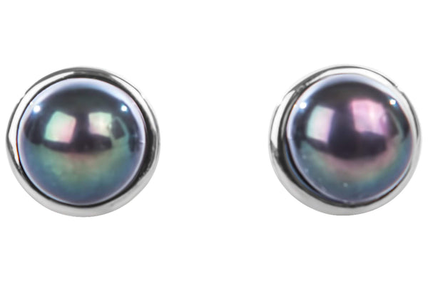 8mm Peacock Blue Freshwater Pearl with Sterling Silver Stud Earring